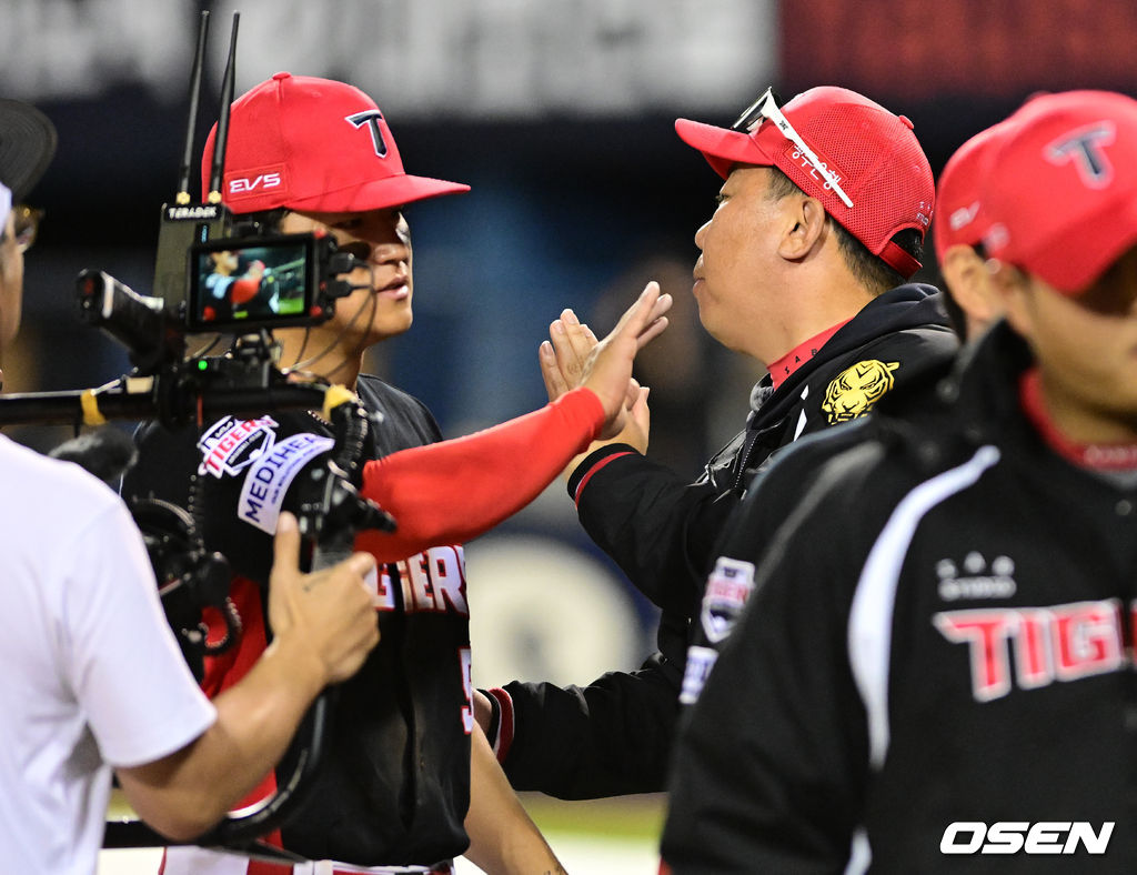 경기를 마치고 KIA 이범호 감독이 김도영과 승리 하이파이브를 하고 있다. 2026.03.31 / jpnews@osen.co.kr