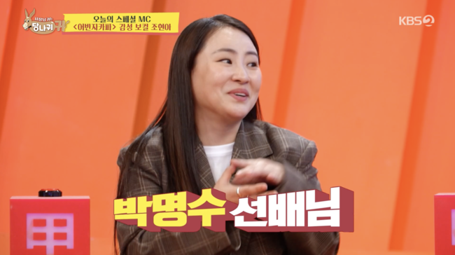 이를 듣던 김윤주는 “저희가 먼저인데요?”라고 박명수의 팔목을 잡았고, 박명수는 “우리 어머니 씀씀이가 너무 커졌다. 흥청망청이다”고 털어놔 웃음을 안겼다.
