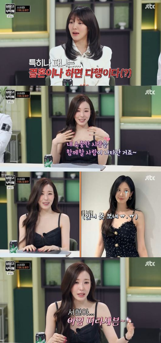 반면, 서현은 티파니와 변요한의 결혼식을 말렸다고. 티파니는 “막내가 갑자기 눈물을 흘리면서 ‘언니 못 보내’ 하면서 울더라. 그래서 제가 ‘서현아 나 37세다’고 했다”라고 전했다.