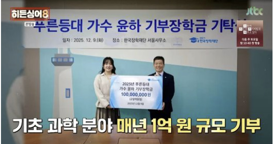 실제로 윤하는 ‘푸른등대’ 기초과학 분야 장학사업을 통해 과학 인재 지원에 나서는 등 남다른 행보를 이어왔다.