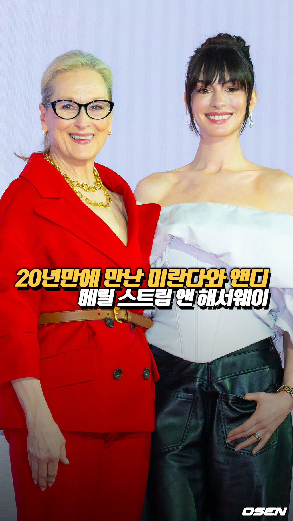 배우 메릴 스트립, 앤 해서웨이가 입장하며 포즈를 취하고 있다. 2006.04.08 / sunday@osen.co.kr