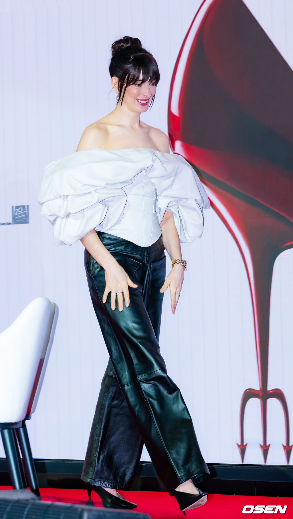 배우 앤 해서웨이가 기자간담회를 마치고 퇴장하고 있다. 2026.04.08/rumi@osen.co.kr
