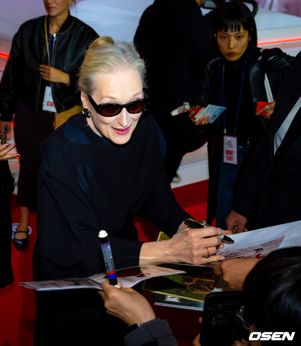 메릴 스트립이 팬들에게 사인을 해주고 있다. 2026.04.08/rumi@osen.co.kr