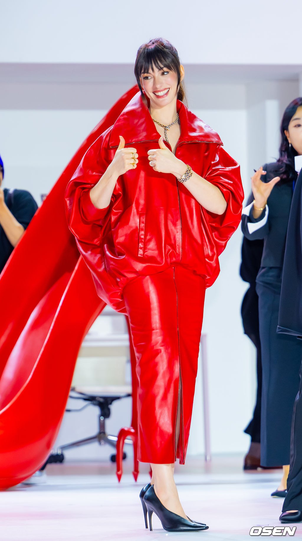 배우 앤 해서웨이가 무대 위에서 포즈를 취하고 있다. 2026.04.08/rumi@osen.co.kr