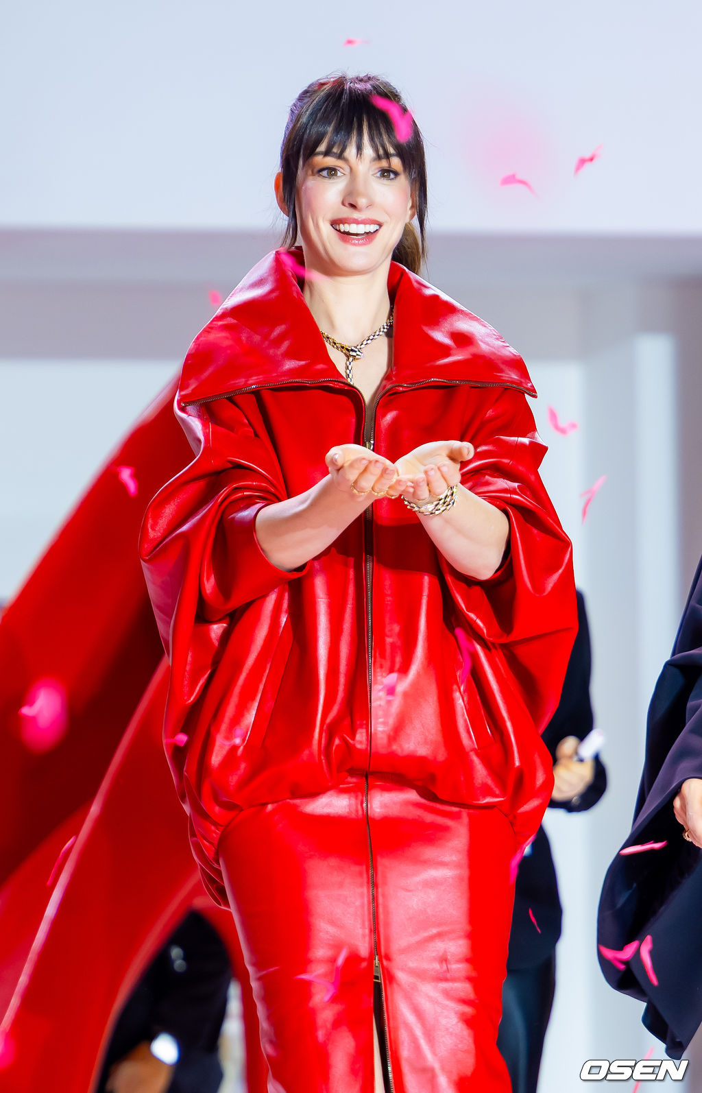 배우 앤 해서웨이가 무대 위에서 포즈를 취하고 있다. 2026.04.08/rumi@osen.co.kr