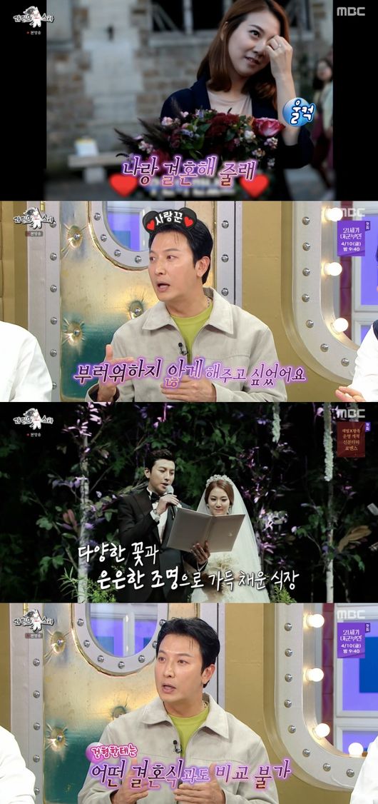 뿐만 아니라 세기의 결혼식도 했다는 박건형. 그는 “지인 결혼식을 다니다 보면 형수님들이 부러운 표정을 짓더라. 내 아내가 저랑 결혼 이후 어느 결혼식장 가도 부러워하지 않게 해주고 싶었다”라고 말했다.
