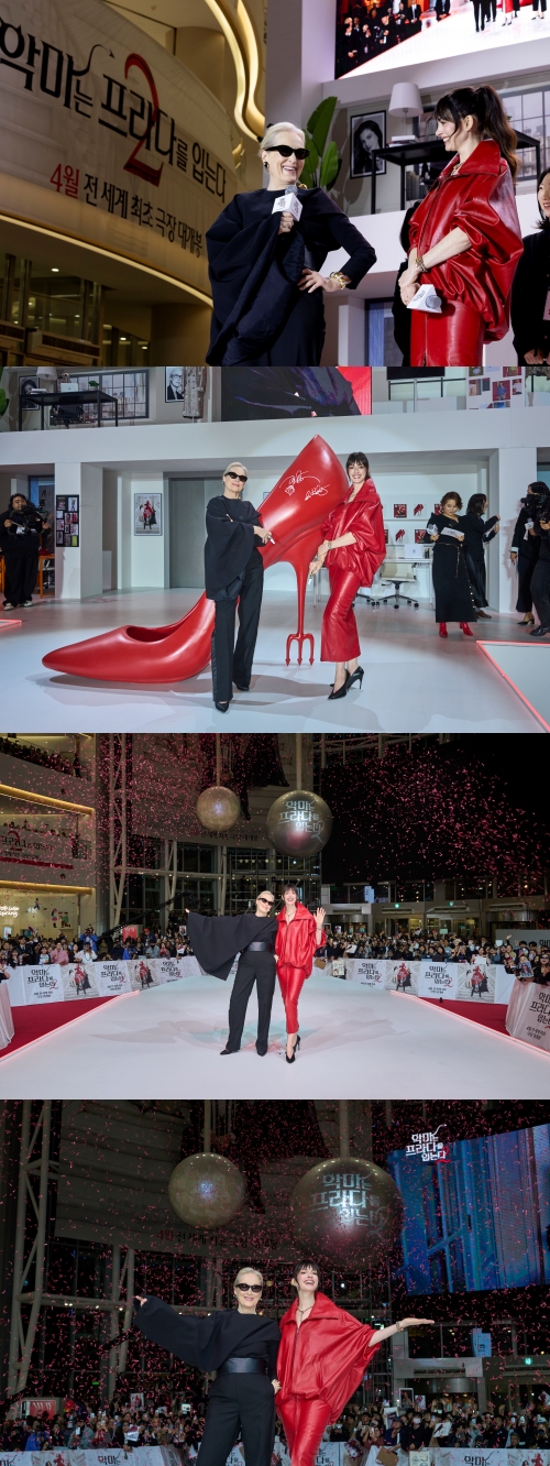4월 극장가의 가장 뜨거운 기대작 '악마는 프라다를 입는다 2'의 메릴 스트립과 앤 해서웨이가 참석한 내한 레드카펫 행사가 한국 팬들의 폭발적 반응 속 성황리에 개최됐다. 본격적인 레드카펫 행사 전 현장에 참석한 관객들 중 ‘베스트 드레서’를 뽑아보는 시간과 영화의 세계를 K-디자이너들의 세련된 감각과 패션에 대한 열정으로 새롭게 재해석한 오프닝 패션쇼가 진행되며 현장을 후끈 달궜다.