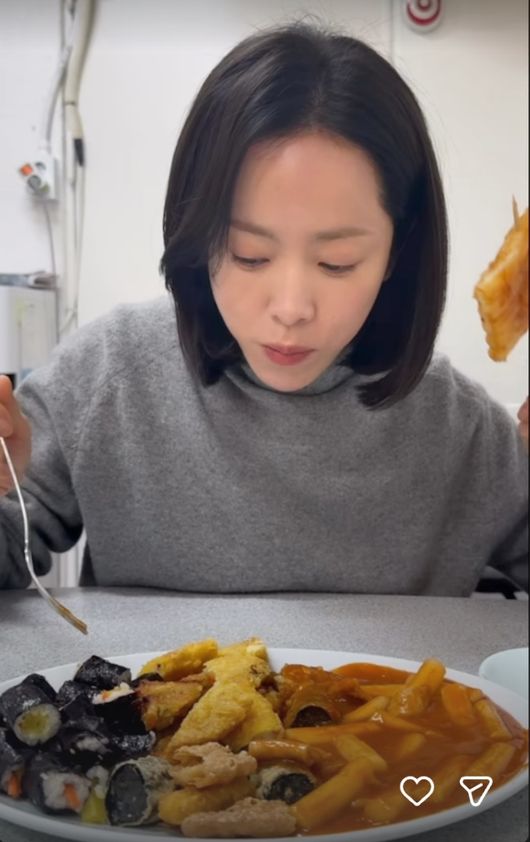 공개된 사진에서 한지민은 떡볶이와 튀김, 김밥 등 분식 한접시를 앞에 두고 즐거워하고 있다. 한 손에는 떡꼬치까지 들고 행복하게 떡볶이를 먹고 있는 한지민이었다. 평소 떡볶이를 좋아하기로 유명한 만큼, 앞에 차려진 음식에 신난 듯 장난스러운 모습을 보여주는 한지민이었다.