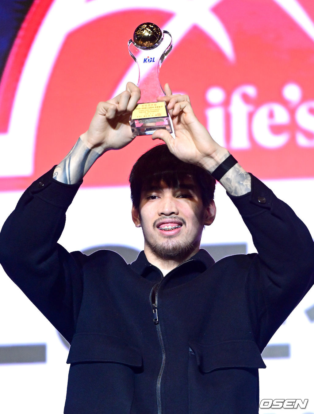 신인상을 거머쥔 고양 소노 케빈 켐바오가 트로피와 함께 포즈를 취하고 있다. 2026.04.09 / dreamer@osen.co.kr