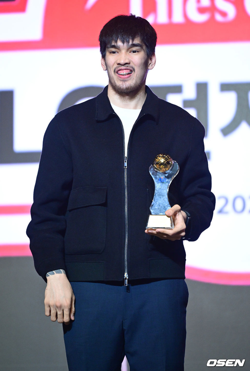 신인상을 거머쥔 고양 소노 케빈 켐바오가 트로피와 함께 포즈를 취하고 있다. 2026.04.09 / dreamer@osen.co.kr