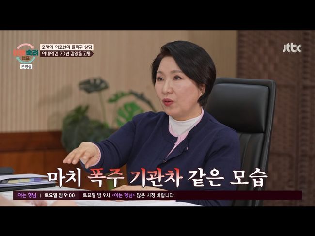 이어 이호선 상담가는 두 부부를 불러 “남편이 해야 할 일은 원가족과 분리가 되어야 한다. 아내가 꽤나 망상적인 생각을 했다. 그런데 남편이 ‘큰아빠’로서의 역할이 뭐가 중요하냐”라며 아내의 그릇된 방향에 대한 잘못을 남편이 먼저 고쳐야 한다는 식으로 말했다. 남편은 "각각의 문제가 있다는 것을 알았다"라며 그를 인지한 후 아내와 대화를 이어나가려고 했으나, 아내는 다시 남편의 가족 문제가 언급되는 것에 더는 의미가 없다고 결론내렸다./osen_jin0310@osen.co.kr