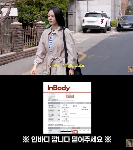 결국 한가인은 인바디 결과를 공개하며 직접 해명에 나섰다. 공개된 수치에는 키 168cm, 몸무게 약 52kg이 찍혀 있어 눈길을 끌었다.