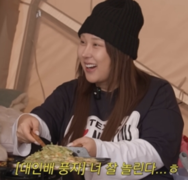 이날 풍자는 엄지윤, 한혜진과 함께 봄동전과 미나리전을 먹던 중 “기름이 너무 많다”며 다이어터다운 면모를 보였다. 이에 한혜진과 엄지윤이 “오 다이어터~ 말라깽이~ 뼈말라~”라고 놀리자, 풍자는 “관리들 좀 해라. 기름 좀 조금 먹고”라고 받아쳐 웃음을 자아냈다.