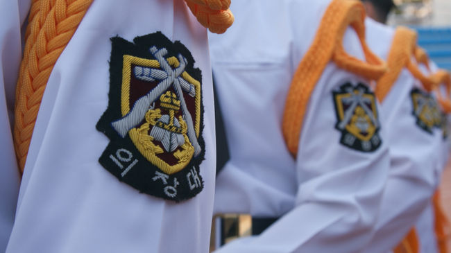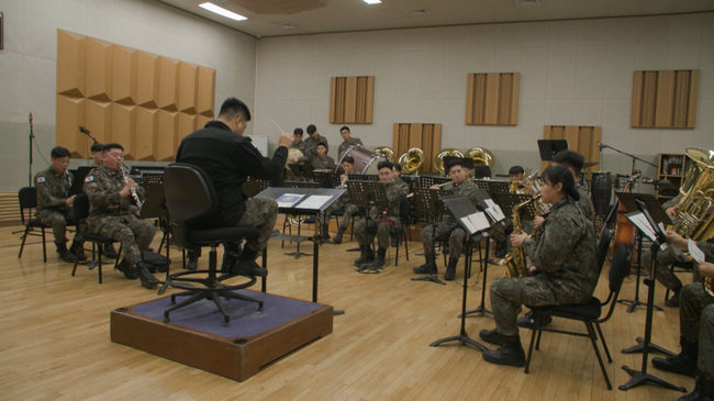 행사를 앞둔 며칠 전, 벚꽃이 채 피지 않은 진해기지사령부. 엄격한 긴장감이 서린 이곳에 군악대 연습실의 장중한 선율이 고요를 깬다. 맑은 음색의 플루트부터 묵직한 저음으로 중심을 잡는 튜바까지. 잠시도 귀를 뗄 수 없는 열정적인 연주가 이어진다. 건물 밖 연병장에서도 상황은 마찬가지. 기합 가득 찬 구령 아래 한 치의 오차 없이 정교하게 동작을 맞추는 훈련이 끊임없이 반복된다.