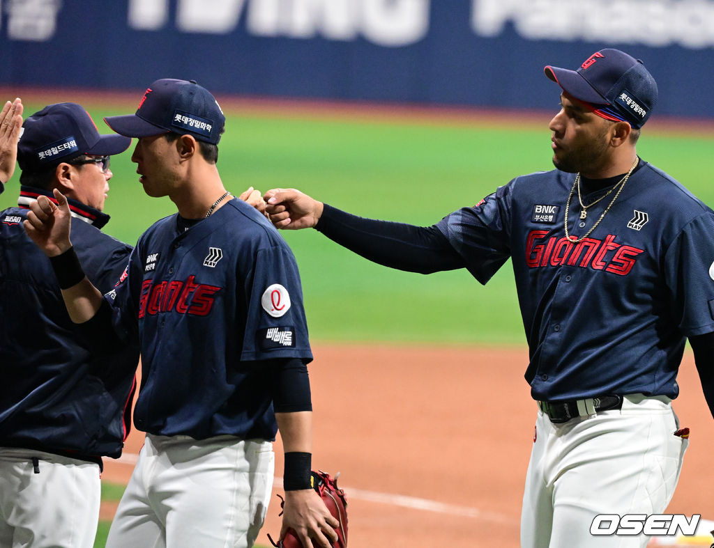 경기를 마치고 롯데 김태형 감독이 레이예스와 승리를 기뻐하고 있다. 2026.04.10 / jpnews@osen.co.kr