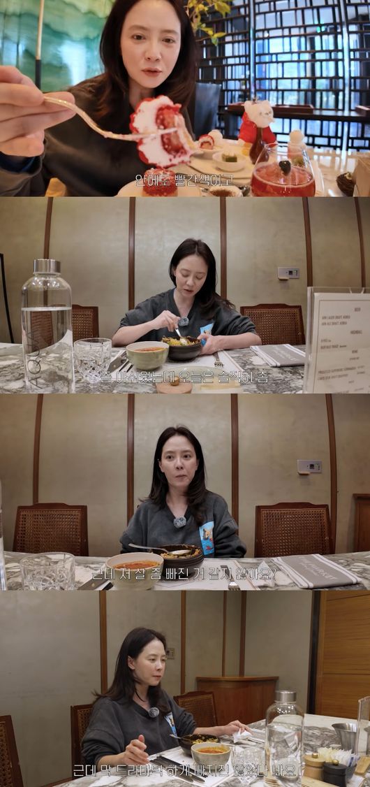여유를 즐긴 뒤, 푹 자고 나온 송지효는 저녁을 먹기 위해 뷔페를 찾았다. 봄동 비빔밥을 제조해 먹던 그는 “좋아하는 음식을 먹는 게 중요한 것 같다. 그때 예은이랑 뷔페 갔을 때 한식을 못 먹어서 아쉬웠는데 오늘은 솔직히 좀 한식 먹고 싶었다”라고 전했다.