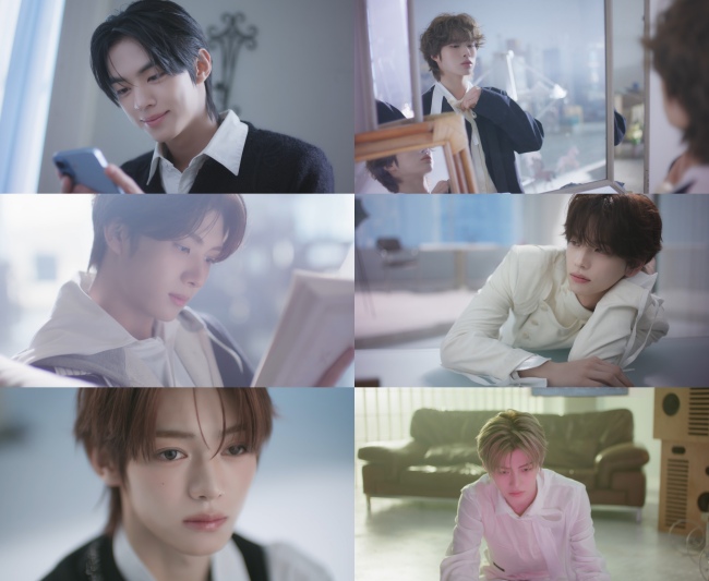 사랑에 빠진 TWS의 벅찬 마음이 화면 가득 비친다. 문자 메시지로 전해진 “네가 너무 좋아”라는 고백에 환하게 미소 짓는 도훈, 누군가를 위해 정성껏 선물을 포장하고 그 순간을 기록하는 경민의 모습이 풋풋한 설렘을 자아낸다. ‘로미오와 줄리엣’을 읽으며 ‘star-cross’d lovers’라는 글귀를 손으로 짚어내는 영재에게서는 마치 다가올 폭풍전야와 같은 고요한 아름다움이 느껴진다.