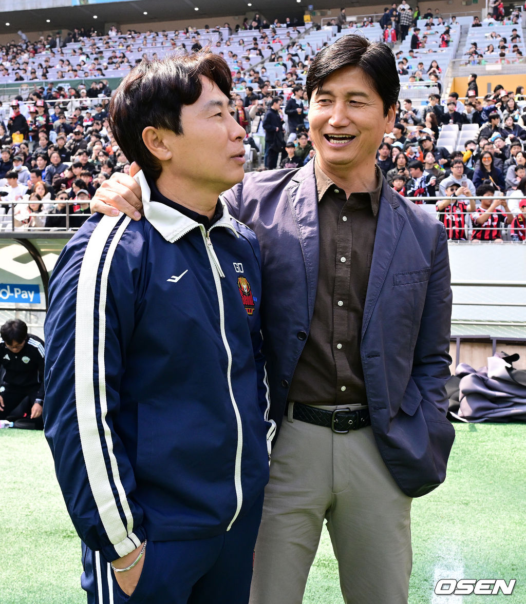 서울 김기동 감독과 전북 정정용 감독이 인사를 나누고 있다. 2026.04.11 / jpnews@osen.co.kr