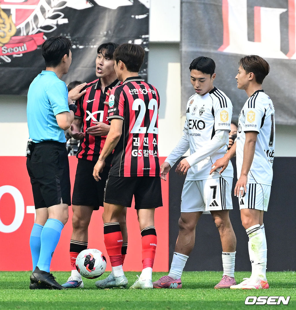 후반 서울 송민규가 주심 판정에 불만을 나타내고 있다. 2026.04.11 / jpnews@osen.co.kr
