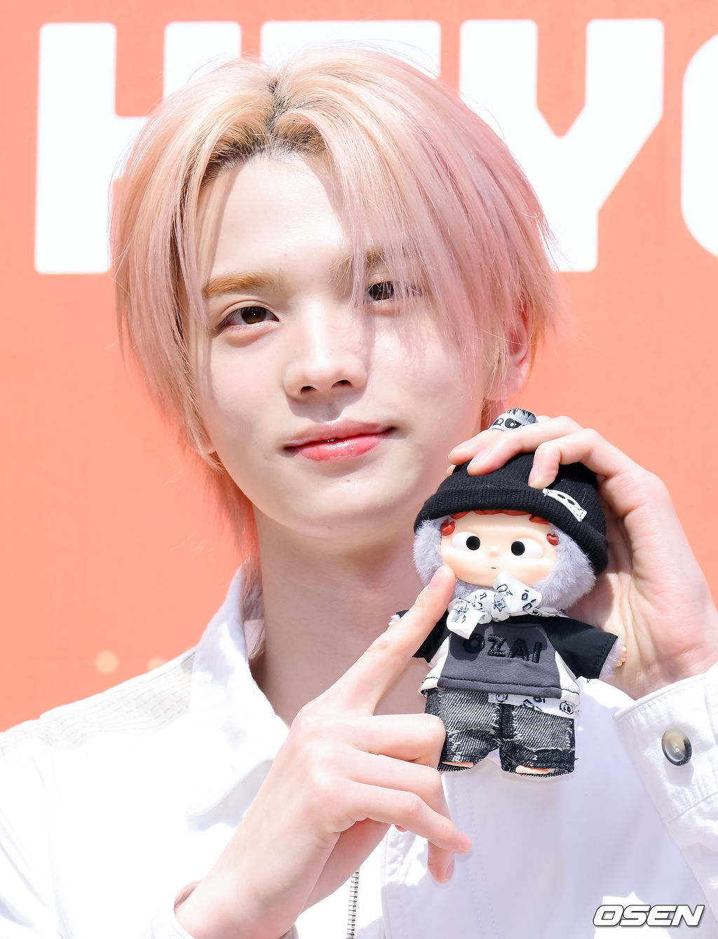 그룹 투어스(TWS) 한진, 영재, 경민, 지훈, 신유가 11일 오후 서울 성수동에 위치한 한 매장에서 열린 토이 브랜드 팝업스토어 오픈 행사에 참석했다.