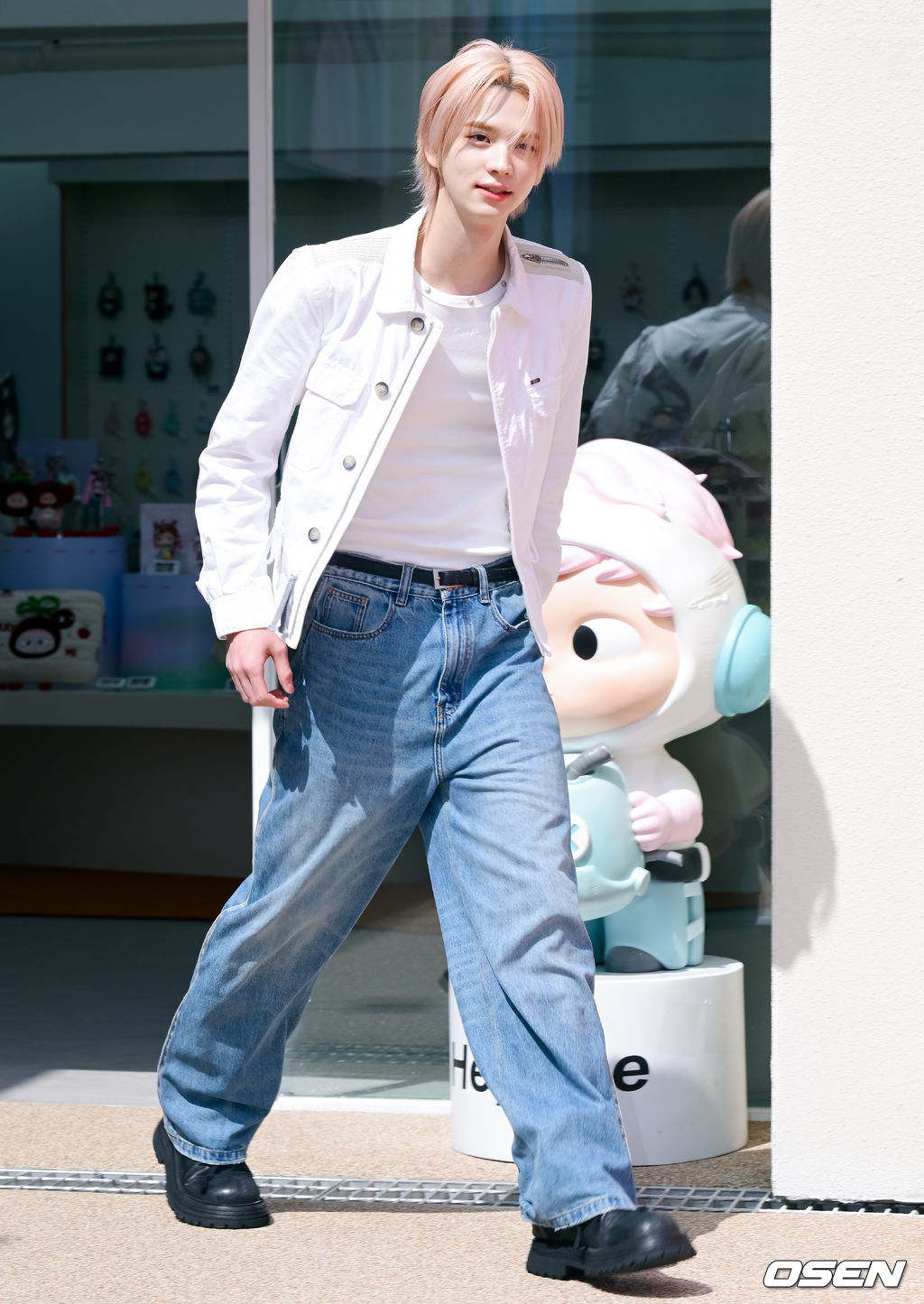 그룹 투어스(TWS) 한진, 영재, 경민, 지훈, 신유가 11일 오후 서울 성수동에 위치한 한 매장에서 열린 토이 브랜드 팝업스토어 오픈 행사에 참석했다.