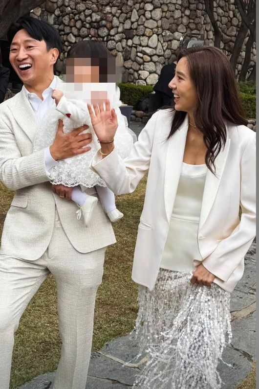 공개된 사진 속에는 야외 행사장에서 화사한 화이트 톤의 의상을 맞춰 입은 이규혁, 손담비 부부의 모습이 담겨 있다. 특히 이규혁은 품에 안은 딸 해이에게 입술을 내밀며 애정 공세를 펼치고 있고, 손담비는 그 옆에서 딸의 손을 꼭 잡은 채 세상을 다 가진 듯한 밝은 미소를 짓고 있어 훈훈함을 더한다.