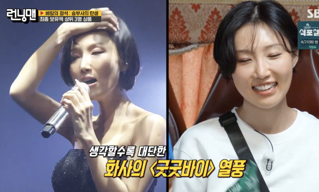 12일 방송된 SBS 예능 ‘런닝맨’에서 화사와 영케이가 출연했다.