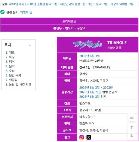 [사진]  ‘트라이앵글’ SNS 계정, 나무위키 페이지