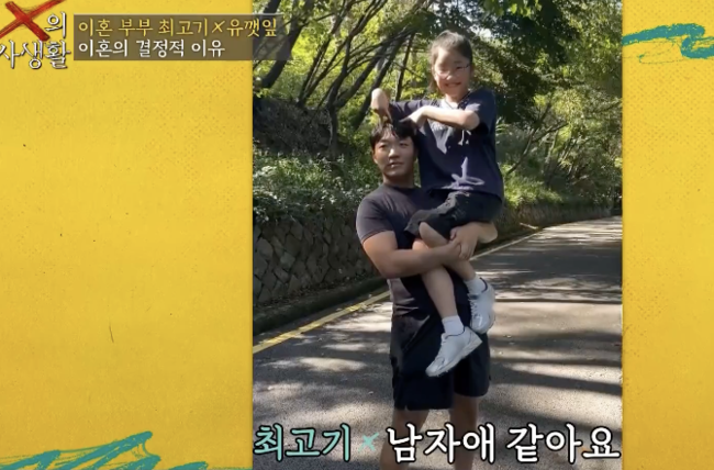 이혼 후 최고기는 우울증을 처음 겪었다며 고백, 유깻잎도 이를 처음 들은 듯 했다. 그럼에도 아이를 키운 것에 대해 최고기는 “돈이 많다지만 돈이 없다”며 “돈보다 책임감이었다”며 당시 4살인 딸에게 이혼 얘기 꺼내기힘들었다는 것.최고기는 “아빠와 엄마가 널 사랑하는건 변하지 않다고 설명했다”며 딸에 대해 “사랑스럽고 귀엽다”고 했다. 최고기는 “양육하지 않았다면 철들지 않은 아빠로 지냈을 것, 딸을 키우며 훨씬 얻은게 많다”며 “딸을 위해 살아간다”고 했다.