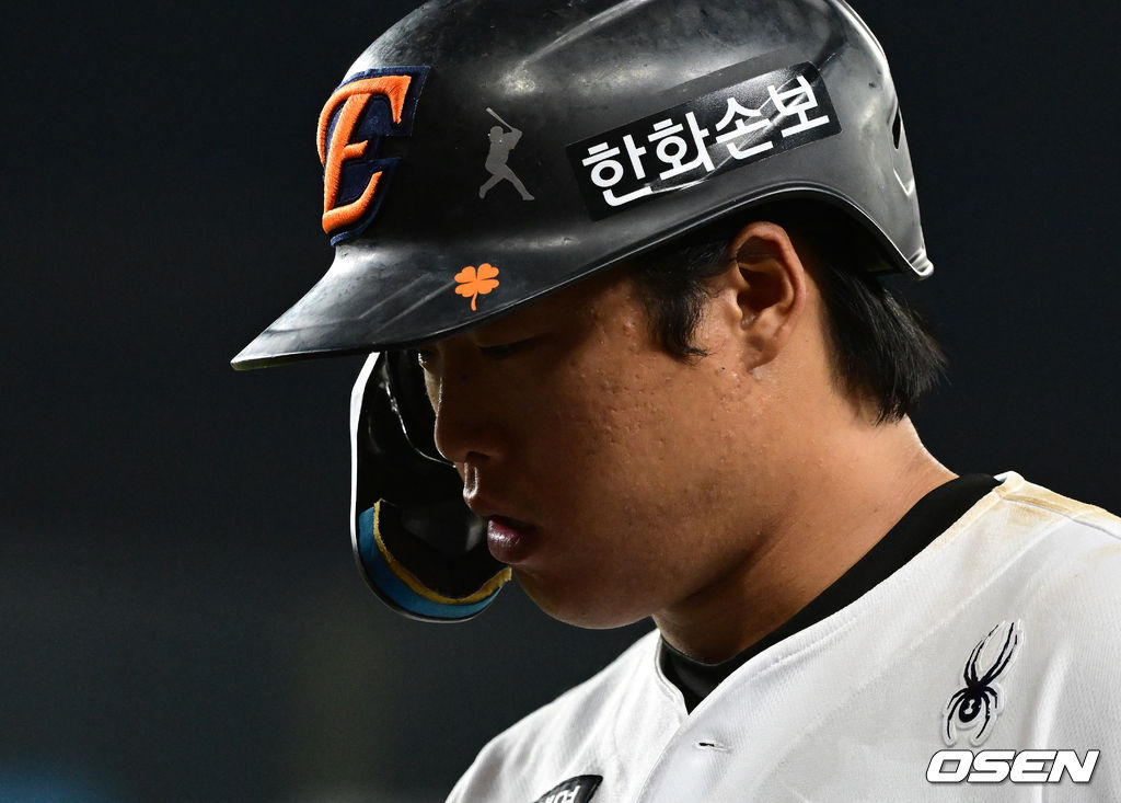 9회말 1사에서 한화 강백호가 1루땅볼로 물러나며 아쉬워하고 있다. 2026.04.15 / jpnews@osen.co.kr