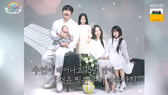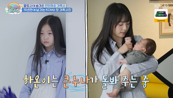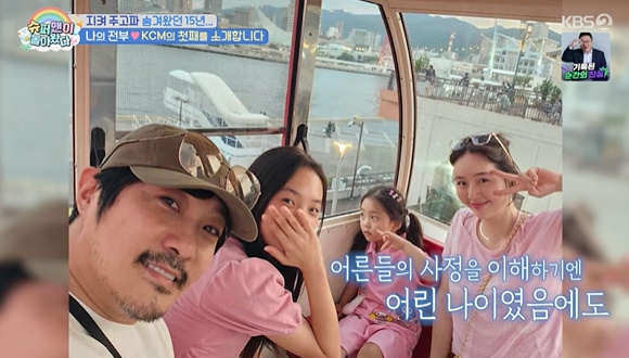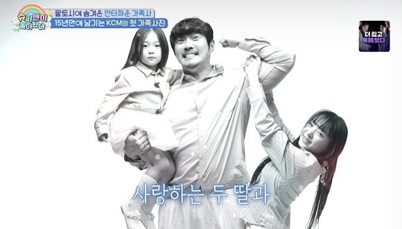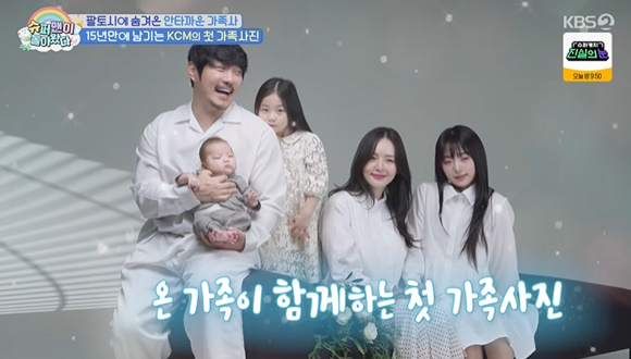 KCM이 약 15년만에 첫 가족사진 찍기에 나섰다. 특히 첫째인 중학생 딸도 최초공개, 오랜시간 가족에게 공개하지못한 딸이었다. 15년만에 최초 공개한 딸.사실 빚 독촉전화로 공개하지 못했던 가족사를 전한 바 있던 KCM은 더욱 각별한 첫째에 대해 "용기내준 딸에게도 고마운 마음"이라 했다. 모두 "딸이 너무 예쁘다 뉴진스 민지 느낌, 아이돌이나 배우해도 되겠다"며 놀랐다.