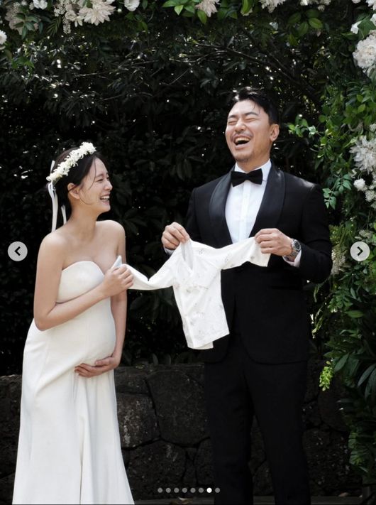 또 다른 사진에서 두 사람은 제주의 아름다운 풍경을 배경으로 환하게 웃으며 포즈를 취하고 있었다. 서지승은 배에 손을 얹고 조용히 미소지었고, 이시언은 말과 함께 사진을 남겼다. 새 가족 맞을 준비를 하면서 기뻐하는 두 사람의 모습이 인상적이다. 이에 가수 손담비도 “너무 축하한다”며 응원을 남겼다.