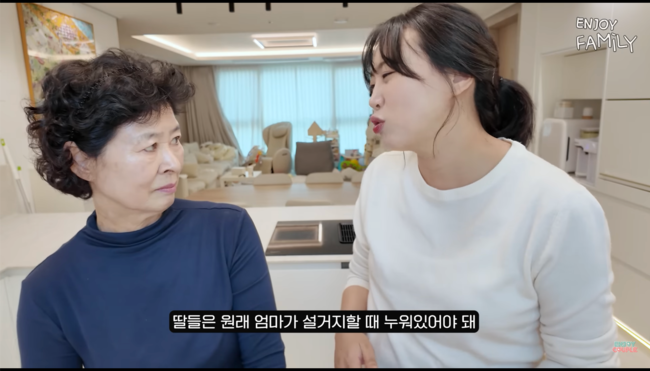 시어머니가 “우리 때는 시어머니한테 말도 못 했는데 넌 말 잘한다”라고 뼈 있는 농담을 던지자, 임라라는 “아이고 무서워 도망가”라며 재치 있게 자리를 피했다.