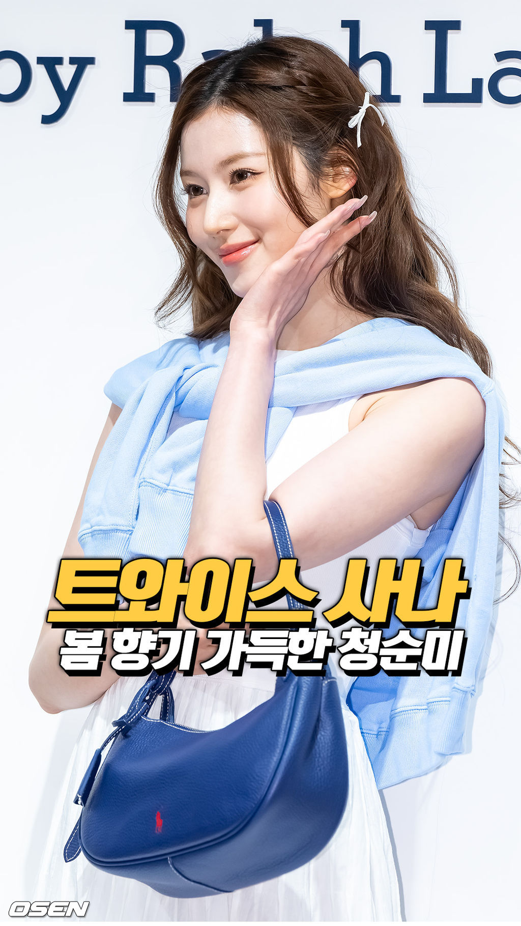 그룹 트와이스(TWICE) 멤버 사나가 21일 오전 서울 송파구 롯데 에비뉴엘 잠실점에서 진행된 폴로 랄프 로렌 '폴로 플레이 백' 팝업스토어 오픈 포토콜 행사에 참석했다.