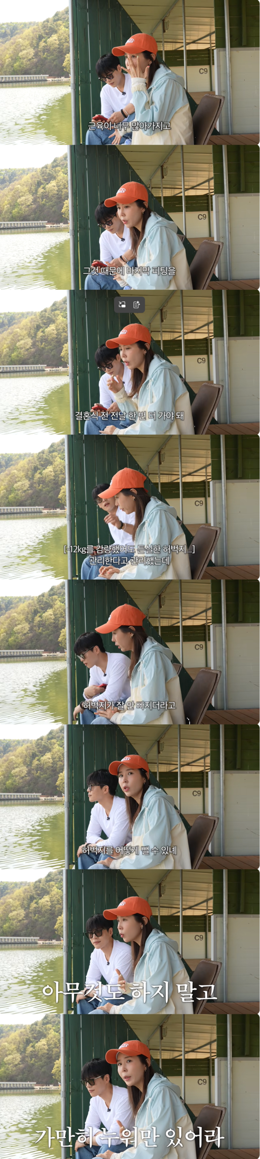 문원은 결혼식을 위해 12kg을 감량하는 열정을 보였음에도 불구하고, 좀처럼 줄어들지 않는 탄탄한 허벅지 근육이 오히려 고민이 된 상황. 문원이 "관리한다고 관리했는데 허벅지가 잘 안 빠지더라고"라며 난감해하자, 신지는 특유의 재치를 발휘했다.