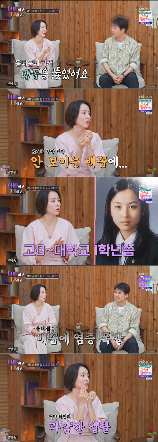 하지만 평소 단아한 이미지의 한혜진에게도 일탈의 대가는 꽤나 쓰라렸다. 한혜진은 "엄마 모르게 감행했는데 생각보다 염증이 심하게 생겨서 고통스러웠다"며 당시의 상황을 생생하게 묘사했다.