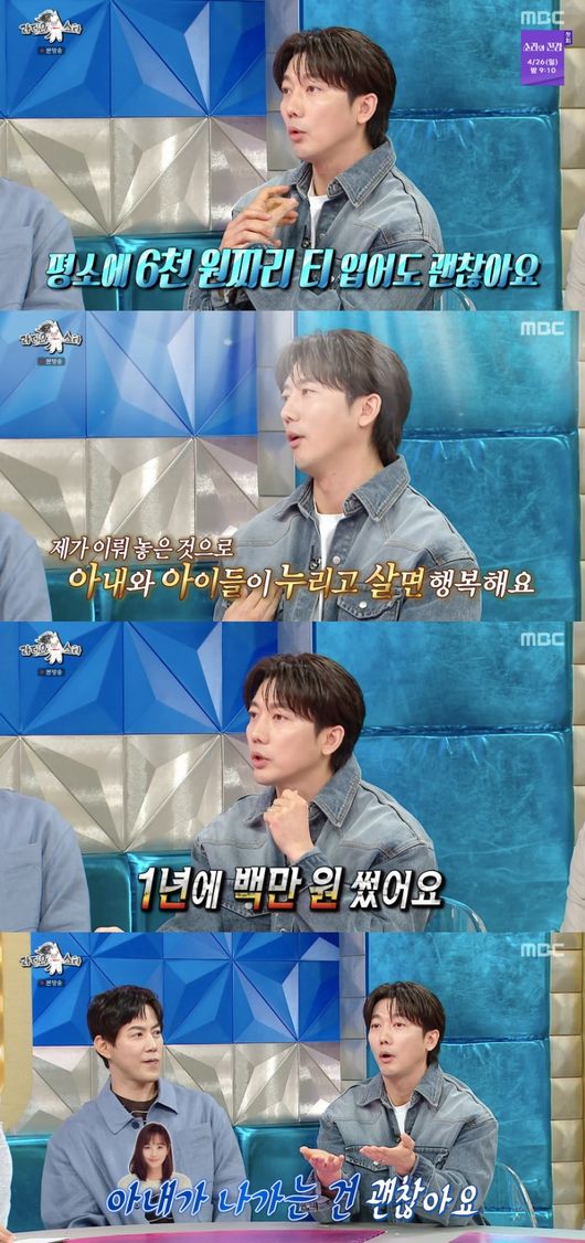 그러자 김구라는 “한 달 용돈이 얼마냐”고 물었다. 기태영은 “제가 보니까 1년에 백만 원 썼다. 사적인 걸로 쓰는 거는 1년에 백만 원. 차 한잔 사주고 밥 한번 먹고 했다”고 밝혀 놀라움을 안겼다.