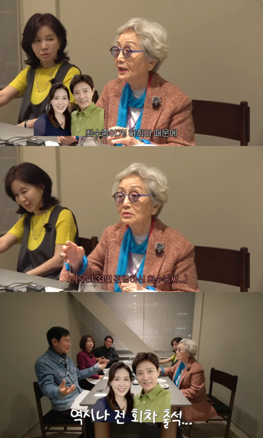 김영옥은 “최수종이 공연 33번을 다 봤다. 매번 하희라 공연할 때마다 보는 거다”고 전해 놀라움을 자아냈다.