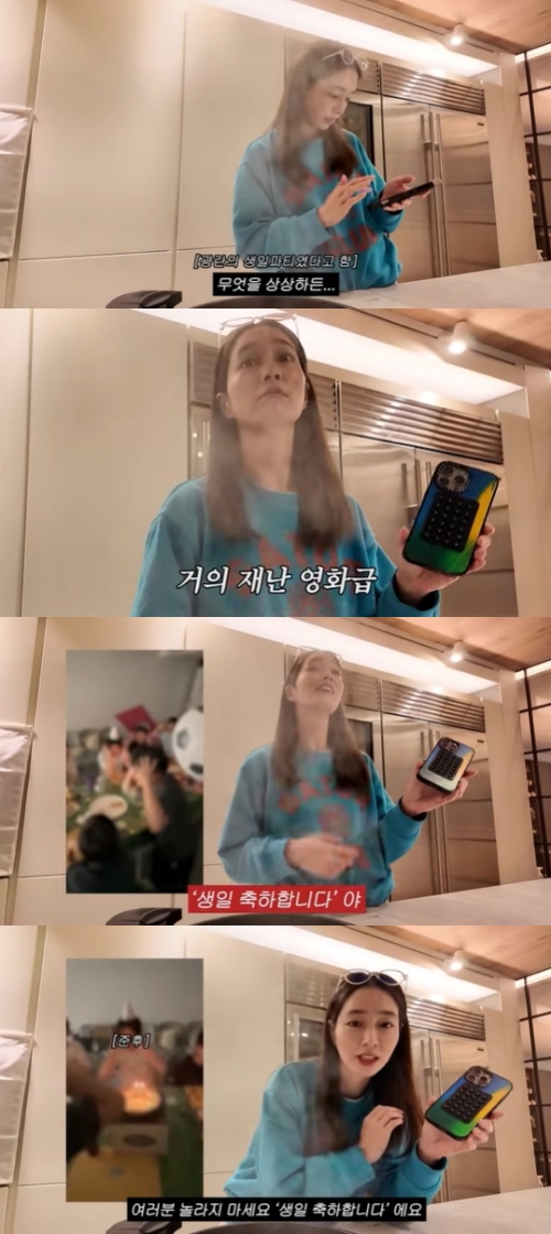 이민정은 "이게 그냥 '생일 축하합니다'라는 뜻이다. 여러분 놀라지 마세요"라며 경기를 일으키며 얼른 영상을 종료해 다시 한번 웃음을 안겼다.