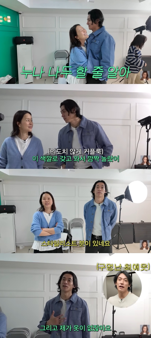 두 사람은 봄 날씨에 딱 어울리는 블루 계열의 커플룩을 입었고, 백지영은 "어쩌다 옷 색깔이 맞게 됐다"며 웃었다. 정석원은 "이 사람은 오전부터 이걸 입고 약속도 갔다 왔고, 나는 우리 스타일리스트 형이 이 색깔로 갖고 와서 깜짝 놀랐다"고 밝혔다.
