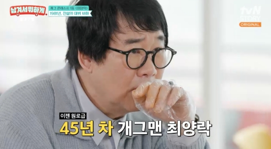 최양락은 데뷔 45년차라고 밝혔으며 “동기가 엄영수 형님. 좋은 일도 많이 하고 결혼도 많이 했다. 세 번씩이나. 제일 기록이다. 그다음에 이상운, 김정렬, 김보화. 8명 뽑았는데 8등이 이경규다. 최하였어도 아직까지도 롱런하고 대장 노릇을 한다”라고 말했다.
