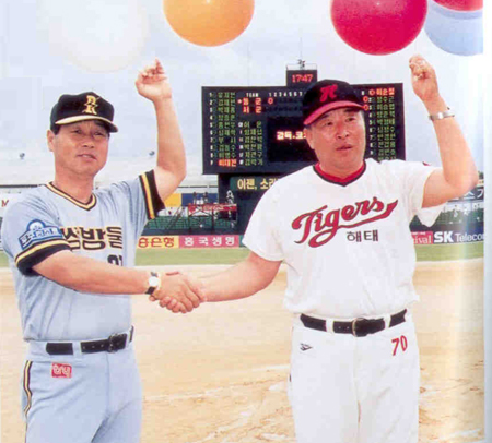 1997년 8월 23일, 삼성과 쌍방울의 대구구장 경기(DH1차전)에서 일어났던 그 유명한 ‘스트라이크 아웃 낫아웃 착각사건’은 한국프로야구사 최대의 해프닝으로 기억될 만한 사건이었다. 복습하는 셈치고 당시 상황을 되돌려보자. 1-4로 뒤진 쌍방울의 9회초 마지막 공격. 상황은 2사 1, 2루였다. 볼카운트 2-1에서 4구째의 원바운드 된 볼을 장재중이 헛스윙하자 주심은 스트라이크 아웃으로 인정, 경기종료를 선언했고 포수 김영진도 경기가 끝난 것으로 착각, 공을 관중석에 던져버렸다. 타자였던 장재중 역시 삼진으로 알고 타석에서 물러나던 순간, 쌍방울의 김성근 감독이 경기장 안으로 뛰어들었고, 방금 장재중의 헛스윙은 경기규칙상 스트라이크 아웃 낫아웃에 해당된다고 주심에게 강력하게 어필하면서 불행은 시작되었다. 삼진을 당하고 덕아웃쪽으로 돌아오려던 장재중은 김성근 감독의 지시를 듣고 황급히 1루로 뛰어나갔고, 그 후 김성근 감독의 집요한 어필이 결국 먹혀들어 종료 선언은 없었던 일이 된 채 경기를 재개해야 했던 사건이었다.(재개된 경기에서 쌍방울이 기어코 역전 점수를 뽑아내 6-4로 승리했다) 당시 해프닝의 정점에 있던 삼성의 포수 김영진은 2001년 한화에서의 선수생활을 끝으로 은퇴했고, 그날 경기의 주심이었던 김동앙 심판도 사건이 일어났던 1997년을 마지막으로 그라운드를 떠났지만, 야구 관계자나 팬들은 물론 당시 악몽 같은 사건의 현장에 있었던 사람들에게도 이제는 흐린 기억 속의 일로 남아있을 뿐이다. 정녕 시간이 약이라는 것을 증명이라도 하듯이…. 그로부터 10년 후, 필자의 기억에서도 멀어졌다 싶었던 이 희대의 해프닝이, 지난 2월 중순 마치 어제 일어난 일처럼 또렷하게 되살아나는 경험을 하게 되었는데, 그 이유는 바로 메이저리그의 규칙변경 때문이었다. 메이저리그(MLB) 규칙위원회가 2월 18일 발표한 규칙변경 사항 중에는 낫아웃 관련 조항이 하나 들어있는데 다음과 같다. ‘낫아웃 상태에서 타자가 처음부터 1루로 향하려는 의도를 지니지 않은 채 홈플레이트 주위의 흙으로 뒤덮인 원(dirt circle)을 벗어날 경우, 자동아웃으로 인정한다.’ 이전까지는 야구규칙 6.09(b)항에 의거, 타자가 덕아웃(계단포함)에 발을 들여놓기 전이면 뒤늦게라도 다시 1루를 향해 뛰어갈 수가 있었다. MLB가 위와 같이 결정한 규칙 변경의 이유를 유추해내는 것은 그다지 어려운 일이 아니다. 단적으로 우리나라에서 일어났던 낫아웃 오판이 만들어 낸 해프닝 같은 사건이 일어나지 않도록 미연에 막아보자는 것이다. 즉 모두가 다 삼진으로 알고 상황이 종료된 상태에서, 뒤늦게 아웃된(?) 타자가 1루로 뛰어나감으로써 엉망진창의 심각한 상황으로 꼬이게 되는 부작용을 막기 위함이다. 크고 작은 해프닝들이 물론 프로야구 역사의 양념 구실을 충실히 해내고는 있지만, 그 정도가 도를 넘어 재미가 아니라 책임을 묻고 감내해야 하는 심각한 상황으로 발전된다면 이는 결코 바람직하지 못한 일이다. 그런 면에서 볼 때, 이번 메이저리그에서 낫아웃 인정시효의 범위를 타자주위의 원안으로 제한한 것은 현실적으로 상당히 설득력 있는 규칙변경이라고 여겨진다. 물론 이 규칙이 우리나라에도 향후 그대로 적용될지는 미지수지만, 엉뚱한 양(?)이 희생의 제물이 되는 사태를 방지하기 위해서는 한번쯤 생각해 볼 여지가 있다고 하겠다. 김영진이 원바운드 된 공을 잡아 타자를 확인사살(?)하지 않은 채, 관중석에 그대로 던져버린 것은 분명 경솔한 행동이었지만, 주변 정황이 모두 삼진을 기정사실로 받아들이는 상황에서 일으킨 행동이었다는 점에서 모든 책임을 김영진에게만 덮어씌울 수는 없는 것이다. 아무튼 이번 미국에서 발의하고 결정된 스트라이크 아웃 낫아웃 관련 규칙이 ‘좀더 예전에 만들어졌더라면 김영진의 낫아웃 착각사건은 일어나지 않을 수도 있었을 텐데…’ 라는 때맞지 않은 미련이 남아 하는 말이다. KBO 기록위원회 1군 팀장 1998년 올스타전 동-서군 감독으로 선임된 김성근 쌍방울 감독이 김응룡 감독과 선전을 다짐하는 악수를 나누고 있는 모습.