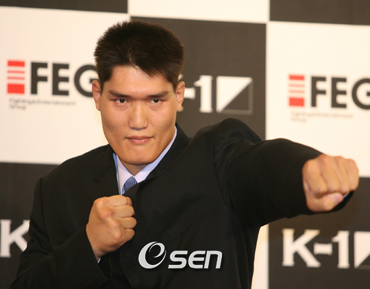 지난 8월 27일, 서울 코엑스 인터콘티넨탈호텔에는 두 골리앗이 한자리에 있었다. 약 3년만이라는 신구 골리앗이 대면을 했고, 취재진이 함께 포즈를 취해 달라고 요구했지만 그들의 눈빛은 서로가 딴 곳을 향하고 있었다. 9월 29일 서울 올림픽 체조 경기장에서 열리는 K-1 월드 그랑프리 개막전에 나서는 최홍만(28)의 대진 상대 발표에 이어 K-1 진출 이후 첫 공식 석상에 모습을 나타낸 김영현(31)이 소개 되었다. 씨름판에서의 마지막 만남 이후 한번도 사적인 자리에서 만난 적이 없다고 김영현 선수는 밝혔다. 그렇다면 공식적인 자리에는 마주친 적이 있었을까? 그 때도 이렇게 어색함과 싸늘함이 있었을까? 어찌 되었던 이 둘은 민속씨름이 아닌 이종 격투기의 기자회견장에서 만났다. 수 년간 최고의 자리를 번갈아 가며 씨름의 흥행에 일각을 이루었지만 이제는 ‘업종 전환’을 해 한 명은 한창 건강 이상설로 예민할 대로 예민해 있고, 또 한 명은 50여 명의 카메라와 질문이 이어지는 회견장의 분위기를 적응하지 못해서인지 입을 꾹 다물고 짧은 답변만을 되풀이 했다. “열심히 하겠습니다. 최선을 다하겠습니다.” 기자회견은 40여분간 진행이 되었지만 둘의 목소리를 제대로 들을 기회는 5분도 채 되지 않았다. 취재진의 긴 질문에 성의를 보이는 자세로 20초 정도라도 말을 이어주면 하는 바람이 어김없이 빗나갔다. 설마 하면서 기자회견은 그렇게 끝났다. 둘은 끝까지 말을 아꼈다. 기자회견을 마친 김영현 선수를 따로 만났다. ‘검정색 정장 차림이 회사에 첫 출근하는 신입사원 같다’며 컨셉을 묻자,“맞죠! 첫 출근이죠. 잘 입지않는 양복을 꺼내 입었습니다. 특별한 건 없고 젊잖은 컨셉이라 할 수 있죠.” “첫 공식 기자회견인데 질문의 답을 좀 길게 하시지 그랬어요? 데뷔 소감이나 훈련 과정을 설명한다거나 혹은 어떻게 해 보이겠다, 뭐 그런 거 있잖아요.” 방송에 담을 내용이 빈약하다며 투덜거리는 필자의 얼굴을 보며 김영현은 “제가 지금 입장에서는 지금 뭐라고 말하기가 좀 그래요. 뭐 경기를 뛰고 난 것도 아니고, 그냥 데뷔했습니다 정도잖아요. 아직 보여 드린 게 없잖아요. 경기를 뛰고 난 후라면 이렇다 저렇다 제 생각을 전하겠는데 현재로는 데뷔를 했으니까 열심히 하겠노라는 것 밖에는 달리 할 얘기가 없네요.” 말수가 적은 사람이라는 것은 알겠는데 기자회견에서 조차 말을 아낀 이유였다. 긴장한 것이 아니냐고 되물어도 아니라면서 말이다. “아직 보여준 게 없고 또 연습을 어떻게 했다 하고 꺼내기도 뭐하고 선수는 실력을 보여주면 되는 것이라고 생각해요.” 아뿔싸! 원하는 멘트 만을 쏙쏙 빼내기 위한 형식적인 인터뷰에 필자 자신이 너무 물들었구나 하는 생각이 들었다. 구구절절 자극적이고 강한 파이터의 이미지를 바랐는 지도 모른다. 최홍만을 향해 도전장을 내미는 흥미위주의 내용이 쏟아지길 은연중에 기대했던가? 정신이 번쩍 들었다. 아직 자신에 대한 평가를 스스로도 내릴 수 없는 입처지라는 김영현은 훈련 중에 간간이 자신이 모자라다는 생각이 들어 힘들다며 속을 털어놓기도 했다. “열심히 하고는 있는데 아직 잘 모르겠네요.” 기자회견을 지켜보던 공선택 관장은 입가에 웃음이 떠나질 않았다. 짧은 대답으로 취재진이 허탈한 웃음만 짓고 있지 않느냐며 공선택 관장에게 물어봤다. “원래 말수가 없잖아요(흐흐).” K-1, 엔터테이먼트 요소가 강한 종목이다. 현란한 몸짓과 제스쳐 그리고 오버하는 모습을 관중들은 원한다. 아직은 데뷔 전 공식 자리기에 조심스러운 것이라고 김영현을 이해하는 쪽이긴 하지만 쇼맨 쉽을 보이는 것도 나쁘지 않다고 말해주고 싶다. 하지만 그의 말이 맞는 부분도 있다. 보여주는 것. 이미 그는 상당히 체계적인 준비를 하고 있는 것을 전해 들을 수 있다. 꼼꼼하고 완벽주의자인 그가 선택한 길에 한 치의 오차도 허락하지 않으며 계획대로 훈련으로 자신을 채찍질 하고 있다. 조심스럽게 입을 다물고 있는 지금이 오히려 폭풍전야일지도 모른다. 그 날 기자회견에 함께 참석한 다니카와 사다하루 총괄프로듀서는 최홍만과 김영현, 둘의 맞대결 가능성에 대해 “그 시기는 김영현이 얼마나 잘하는가에 달려있고 내년 또는 내후년에 그 기회가 오기를 바란다”고 밝혔다. 그 때쯤이면 김영현의 거침없는 발언을 들을 수 있을까? 혹은 데뷔 전을 치르고 난 후엔 술술 이야기가 나올까? 필자 혼자 생각해 본다. 씨름과는 다른 분위기에 적응하는 데는 시간이 걸릴 것이라고. 모래판이 아닌 화려한 조명과 옆 사람의 목소리조차 들리지 않는 시끄러운 분위기까지 적응하는데는 시간도 필요할 것이라고. 데뷔전의 상대는 아직 정해지지 않았지만 상대가 누가 되던지 간에 김영현의 성공적인 데뷔전의 제물이 되었음 좋겠다. 그래서 원체 달변인 그가 내뱉는 한마디 한마디가 화제가 되길 바라면서 말이다. 홍희정 KBS 스포츠 전문 리포터
