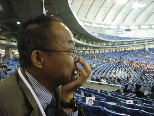 일본프로야구 센트럴리그의 공식기록원으로 일한 지 올해로 38년. 10년이면 강산도 변한다는 긴 시간인데, 강산이 네 번이나 변할 수 있을 만큼의 장구한 세월을 오로지 공식기록원 한 길만을 바라보며 묵묵하게 걸어온 히가시주르 코지(東水流 幸二, 58) 기록부장을 만났다. 1971년 처음 공식기록원으로 데뷔한 이후, 그가 올해까지 출장한 경기수는 메인 기록원만 따져 1300여 경기. 센트럴리그 개인통산 9번째로 많은 출장 경기수를 기록하고 있는 현역 베테랑 기록원이기도 하다. 외형적인 체구는 다소 왜소한 편이지만 필자의 물음에 그가 던지는 말 한마디 한마디에는 지금까지 다져온 기록에 대한 깊은 애정과 철학이 옹골지게 담겨 있었다. 그런 이유로 질문의 방향도 기록에 대한 사실적 이야기에 머물기 보다 야구기록에 관한 정신적인 부분까지도 짚어보고 싶다는 마음이 자연스레 일었다. 굳이 비교해, 전편에 다루었던 아라이 퍼시픽리그 기록부장에게서 일에 대한 확고한 자신감과 추진력이라는 외형적 힘을 느꼈다고 한다면, 이번 히가시주르 센트럴리그 기록부장에게선 오랜 경험과 연륜에서 묻어 나오는 정신적인 내면의 힘과 깊이를 엿볼 수 있었다. Q:먼저 센트럴리그 기록부의 구성과 현황에 대해서 말씀해 주십시오. A:공식기록원은 모두 12명입니다. 연령대는 퍼시픽리그와 마찬가지로 20대에서 60대 초반에 이르기까지 다양합니다. 리그 최고령자는 1500경기가 넘는 출장 경기수를 갖고 있는 61세의 ‘이시이(石井)’ 기록원입니다. Q:퍼시픽리그의 기록부장은 경기에 출장하지 않는 것으로 들었습니다. 센트럴리그도 같습니까? A:그렇지 않습니다. 센트럴리그에서는 기록부장 역시 공식 경기에 나가 직접 기록을 하고 있습니다. Q:학교 졸업 후 바로 공식기록원으로 활동하셨는지요? A:아닙니다. 국립전문학교를 졸업한 후에 민간기업에 취직을 했습니다. 그러다가 공식기록원 채용관련 신문공고를 보고 응시, 기록원이 되었습니다. Q:까마득한 일이 되겠지만 그 옛날의 기록원 생활은 어떠했는지요? A:처음 기록원이 되었을 때는 기뻤습니다. 하지만 1군에서 메인 기록원으로 데뷔하기까지는 아주 오랜 시간이 걸렸습니다. 당시 선배님이 46세 정도였는데 그 분이 거의 은퇴하실 때까지 제게는 메인 기록원으로서의 기회가 주어지지 않았습니다. 한 8, 9년 정도 걸렸다고 생각됩니다. 그 때 선배님에게 내게는 왜 기회를 주지 않는 지에 대해서 물어보거나 따졌다면 좀더 기회가 일찍 돌아왔을지도 몰랐을텐데…. 그 때는 그럴 용기가 없었습니다. Q:기억에 남는 경기를 떠올린다면? A:오랜 세월 동안 공식기록원으로 일해왔지만 노히트노런이나 퍼펙트 경기를 아직 한번도 기록해보지 못했습니다. 개인적으로 기억에 남는 경기는 아마도 프로 데뷔전(2군)이지 않을까 생각합니다. 첫 데뷔 전을 치르게 되었는데 경기가 시작되자마자 묘하게도 1번과 2번 타자의 타구에서 수비실책이 연속으로 나와 ‘에러(Error)’ 판정을 잇달아 하게 되었습니다. 당시 ‘조짐이 이상한걸 보니 내 인생 자체가 이러다 에러인생이 되는 것은 아닐까?’하는 걱정이 들기도 했지요. Q:저는 기록강습회를 통해 ‘야구를 정말 사랑한다면 오히려 기록원이 되지 말라’라고 얘기한 적이 있습니다. 기록원이 되기 전과 비교해 야구를 보는 눈이나 감정의 변화를 말씀해 주십시오. A:공감이 가는 말입니다. 야구팬이었을 때는 야구가 아주 재미있었습니다. 하지만 직업으로서의 야구는 책임이 따르는 만큼 마음이 무겁고 순간순간이 매우 어렵습니다. 미스(실수)에 대한 부담이 늘 따라다니기 때문입니다. Q:경험으로 미루어 공식기록원이 가져야 할 마음가짐이나 자세 또는 가장 중요하다고 생각하는 부분에 대해 한 말씀 해주신다면? A:기록원에게 있어서 가장 중요한 점은 뭐니뭐니해도 ‘경험’이라고 생각합니다. 아무리 머리가 좋거나 이론에 밝다고 해도 경험이 많은 사람을 따라 갈 수는 없습니다. 한편 기록원이 되고 난 뒤 2, 3년정도 흐르면 하나의 위기가 다가 옵니다. 판정에 대한 자신감이 줄어들지요. 경험이 조금씩 쌓이면서 자신감이 생길만한 시점인데 오히려 타구가 나왔을 때 판단이 잘 서지 않는 경우가 자주 발생합니다. 이것 역시 경험으로 극복하는 수밖에는 없습니다. Q:매년 발간하고 있는 기록집을 뒤져보니 역대 리그 최다출장 기록원의 경기수가 3585경기로 나와 있습니다. 기록부장님은 40년에 가까운 경력임에도 1300경기 정도인데 그 이유는? A:과거 초창기에는 혼자서 도맡아 일을 하다 보니 아마도 출장경기수가 많아졌던 것 같습니다. 하지만 지금은 젊었을 때 일을 시작했다 하더라도 은퇴할 때까지 공식기록원으로서 2000경기 이상 출장할 가능성은 상당히 낮습니다. 심판과 달리 한 경기에 메인 기록원 한 명에 한 해 출장기록을 인정하고 있는 리그의 기준 때문입니다. (한국에서는 메인 기록원과 전산 입력을 담당하고 있는 기록원의 출장 경기를 모두 정식 출장 경기수로 인정해주고 있다) Q:기록원 출장 경기수 집계에 페넌트 레이스 경기수만 포함됩니까? A:아닙니다. 페넌트 레이스 경기 외에도 올스타전이