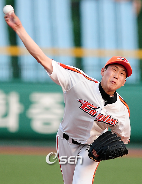 올 시즌 팀의 좌완 에이스 류현진에 이은 제 2선발 자리를 꿰차며 한화 마운드의 세대교체를 책임질 중추 주자로서 야심찬 첫 걸음을 내디뎠던 프로 3년차의 우완투수 김혁민(21). 개막전 다음날인 4월 5일, 지난해 우승팀 SK 와이번스를 상대로 다소 버거워 보였던 선발등판을 그럭저럭 치러낸(4⅓이닝 3실점) 김혁민이 활화산 같은 타선의 전폭적인 지원에 힘입어 불과 9경기만에 시즌 5승을 몰아거둘 때까지만 해도 그의 앞길은 탄탄대로처럼 보였다. 화력지원 부실로 뛰어난 평균자책점(방어율)을 기록하고 있으면서도 번번이 승리를 따내지 못하고 있던 봉중근(LG)의 경우와 극과극으로 비교될 만큼 행운도 많이 따라 주었다. 하지만 김태균과 이범호를 비롯한 팀의 주포들이 이런저런 부상으로 전력에서 번갈아 제외되는 바람에 타선의 힘이 눈에 띄게 무기력해지자 한화 마운드 역시 신,구 불문 동반 침체로 빠져들기 시작했고, 팀 순위의 하락과 함께 김혁민의 운도 거기까지였다. 7월 7일 현재 승률 3할을 겨우 웃도는 성적으로 최하위에 밀려나있는 한화, 급기야 12연패로 ‘역대 팀 최다연패’(종전 11연패)라는 달갑지 않은 기록마저 갈아엎는 지경에 몰리고 말았고, 김혁민 역시 개인으로서 데뷔 후 최다연패인 5연패(진행 중)의 쓴 맛을 봐야했는데, 이런 와중에 결과보다 더욱 신경이 쓰이는 대목은 김혁민의 투구내용이다. 최근 선발등판한 5경기의 평균 투구이닝은 4이닝을 겨우 넘기는 수준. 6월 14일 KIA를 상대로 5⅔이닝(4실점)을 던진 것을 제외하고 나머지 4번의 등판에선 모두 5회를 채 버텨내지 못했다. 이 기간 동안 김혁민이 기록한 평균자책점은 무려 11.22로 올 시즌 통산 평균자책점 8.45보다도 훨씬 높은 수치다. 볼넷과 삼진의 비율도 대략 1:1 정도였는데 최근 볼넷 숫자가 삼진에 비해 더 많아지는 형국(19:14)이다. 심리적인 변화의 영향도 있겠지만, 직구나 주무기로 사용하고 있는 슬라이더를 효과적으로 뒷받침해줄 만한 커브나 체인지업의 제구력이 아직 확실하게 다듬어지지 않은 것이 부진에 빠진 주된 이유라는 분석이다. 투수 자원이 풍족한 팀에서라면 잠시 2군에 내려가 몸과 마음을 추스릴 수 있는 여유를 가져볼만도 하련만 팀 사정은 그렇게 호락호락하질 못하다. 상황이 이렇다보니 김혁민의 기록은 악화일로다. 아직은 규정투구회수(팀이 치른 경기수와 동일)를 채우지 못해 투수부문 서열에서 그의 기록이 수면위로 떠오르지 않고 있지만, 그 안을 들여다보면 가히 독보적(?)이다. 특히 평균자책점 부문이 그렇다. 현재 한국프로야구에서 규정투구회수를 넘긴 투수들을 대상으로 집계한 방어율 순위에서 역대 최고로 높은 수치를 기록했던 선수는 삼미 슈퍼스타즈의 김동철(1982년)이다. 당시 김동철은 32경기에 등판해 93이닝(규정투구회수는 80이닝)을 던지며 1승 9패의 성적을 남긴 바 있는데, 그 때 작성된 7.06이라는 고난도(?) 방어율 기록이 무려 27년이 지난 지금에도 불멸의 기록(?)으로 남아있다. 그런데 김혁민이 이 케케묵은 기록을 갈아치울 가능성이 농후해지고 있다. 현재(7월 7일)까지 김혁민의 방어율은 8.45, 투구회수는 71⅓1이닝이며 한화가 치른 총 경기수는 76경기로 언제든지 규정투구회수 내로의 진입이 가능한 상태다. 다만 걸림돌(?)이 있다면 조기강판. 4, 5일을 쉬고 등판이 이루어지는 선발투수의 특성상 앞으로도 매번 5이닝 정도는 견뎌주어야 종국에 규정투구회수를 넘길 수 있다. 규정타석을 채운 타자들 중에서 가장 낮은 타율을 기록한 선수를 흔히 ‘멘도사라인(Mendoza Line)’으로 부른다. 그러면 반대로 규정투구회수를 채운 투수들 중에서 가장 높은 방어율을 기록한 선수는 뭐라 부르면 좋을까? 187cm의 키에 85kg 안팎의 균형잡힌 몸매를 가진 정통파 투수로 2007년 2차지명 1순위(5번)로 한화에 입단한 고졸신인 김혁민. 어제보다 오늘이, 오늘보다는 내일이 더 기대되는 차세대 유망주 김혁민의 ‘최고 방어율을 향한 무모한(?) 도전’은 현재 진행 형이다. 윤병웅 KBO 기록실장 김혁민의 힘찬 투구 모습.
