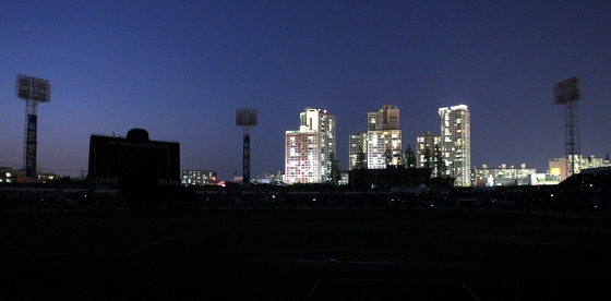밤하늘에 하얀 공이 날아가는 시각적인 청량감을 한껏 만끽할 수 있게 만들어주는 야구장 조명. 눈부신 그 광채만큼이나 잘 쓰면 약이 되고 잘못 쓰면 독이 되는 존재임을 새삼 느끼게 해준 봄 밤이었다.