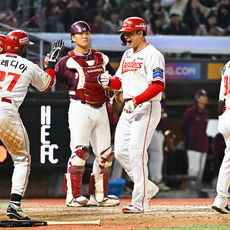 2026.03.31 20: 39스리런 김재환, 이적 첫 홈런 쾅!