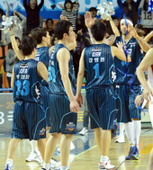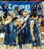 2013.02.16 16: 05기분좋은 KCC 선수들과 치어리더,'꽃비 맞으며'