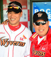 김상현,'이만수 감독과 함께 잇몸미소 활짝!'