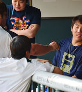 2013.05.23 16: 25최준석,'김현수의 뺨에 홍삼팩으로 쨉!'